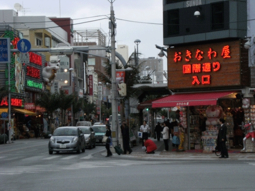 国際通りの入口。県庁の前、りゅうぼうから始まる。