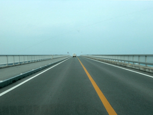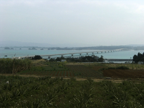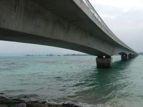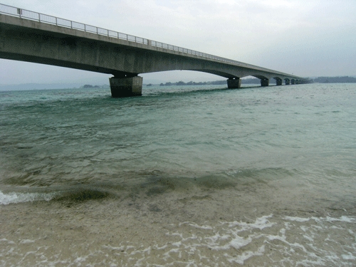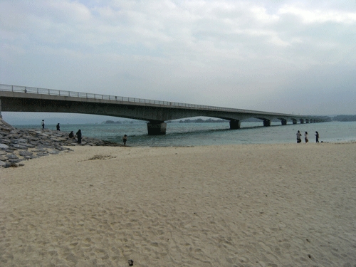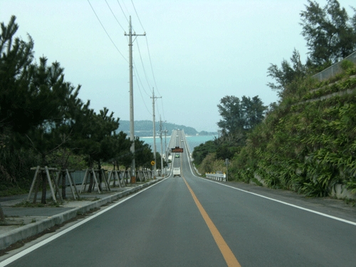 奥武島、屋我地島を渡りいよいよ古宇利島に架かる県内最長の橋、古宇利大橋だ。