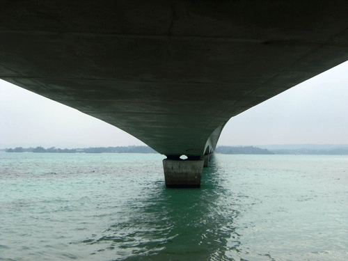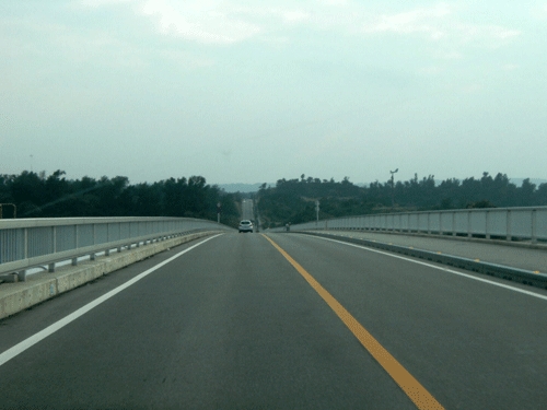 橋の途中で下を見る。き・れ・い!バスクリーンだ!