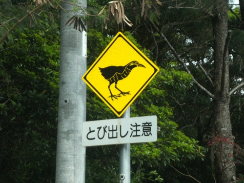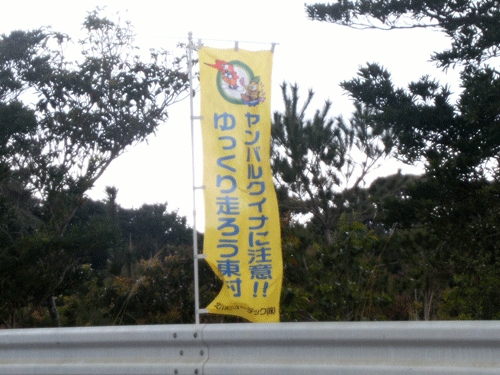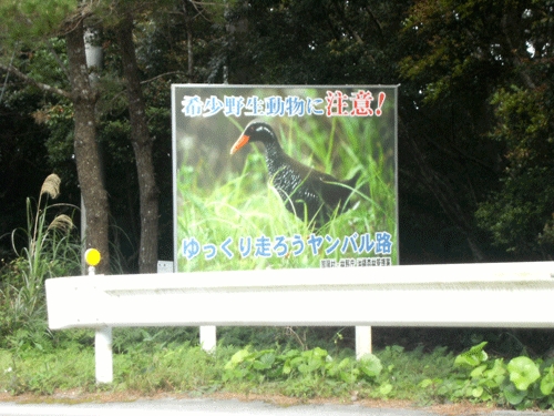 道路沿いはヤンバルクイナへの注意がいっぱい。