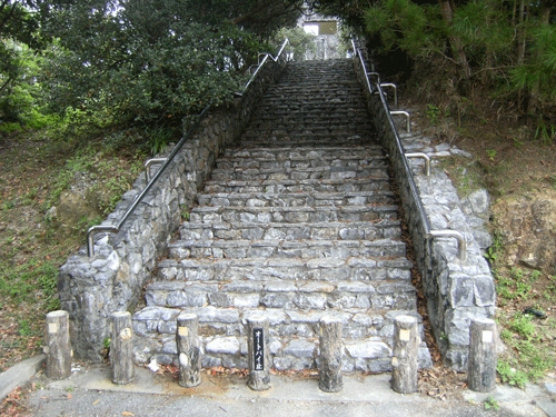 車で途中まで登る。そこからこの階段を登る