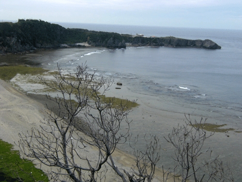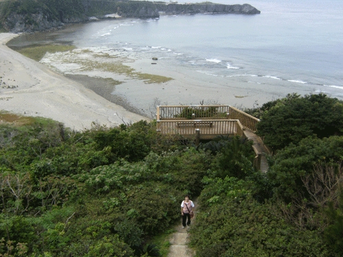 展望台から辺戸岬と宇佐浜ビーチの全体が見える。