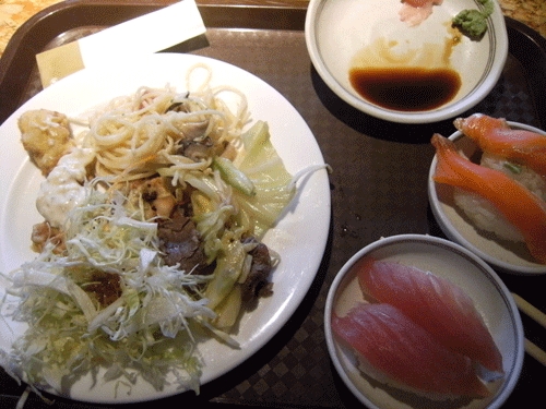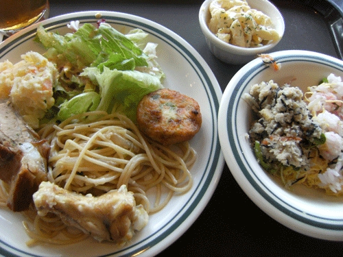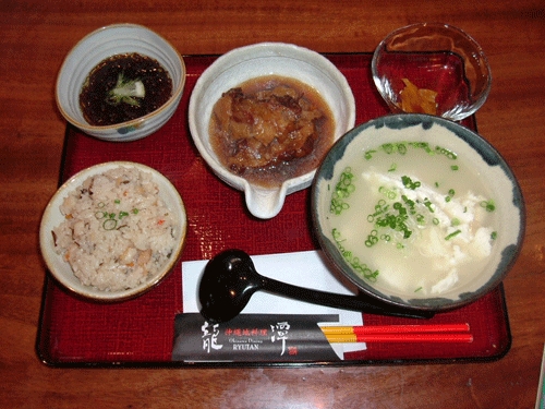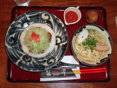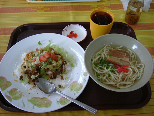 沖縄そば定食、左はタコライス。ひめゆりの塔の隣の食堂にて(07.11) | | |