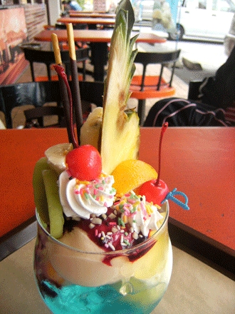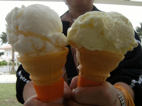 沖縄ぜんざい。アメリカンビレッジにて。格闘技を引退した須藤元気夫妻とばったり。 | | |