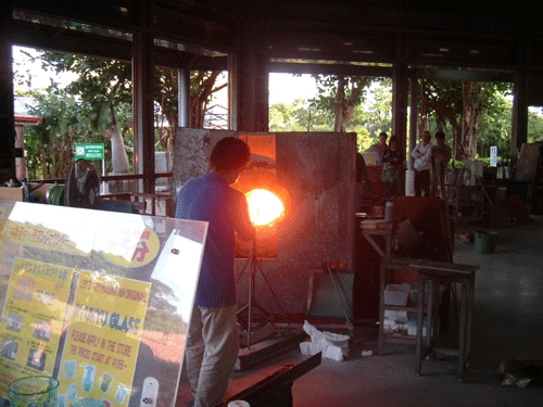 おきなわワールド。琉球王国城下町の琉球ガラス工房