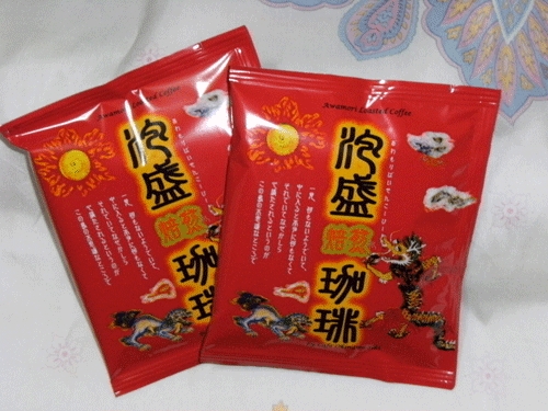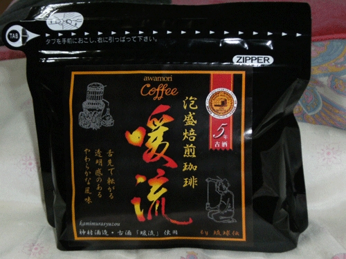 泡盛珈琲。5年もの(古酒)の泡盛に浸けた豆を使用。