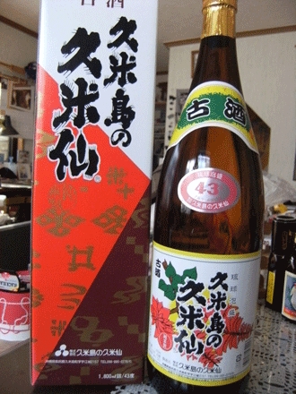 古酒、久米仙。43度。おみやげで自家用です。久米島町。