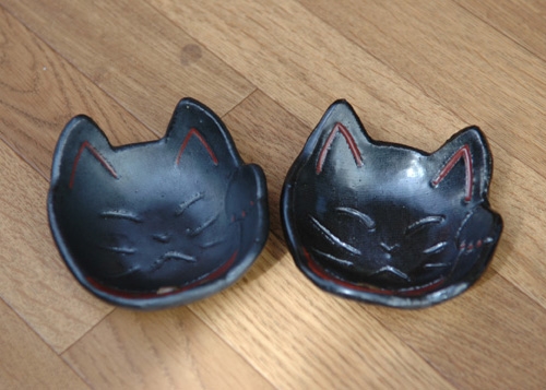 蚊取線香立て。左:線香縦、右:線香横。別々に購入したのに作者は一緒になった。