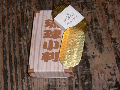琉球村。琉球村小判で買い物。1,000円で11枚(1,100円分)