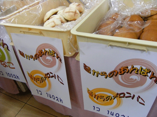 那覇の物産展。メロンパン。丸くなくて楕円である。