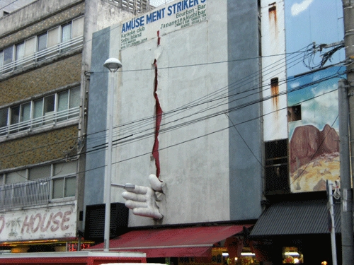 国際通り。手が突き出ている。